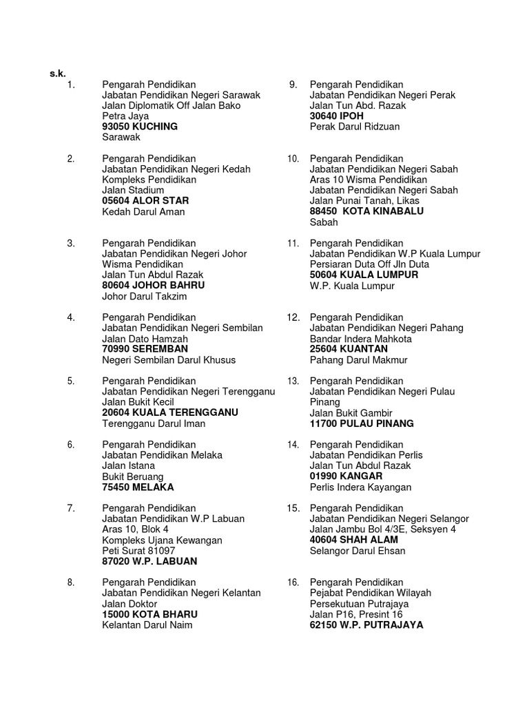 . Jabatan Pendidikan Negeri Sabah Wisma Jabatan Pendidikan Negeri Sabah Jalan Punat Tanah Likas 88450 Kota Kinabalu Sabah. Meitdsarawakgovmy Subscribe to Newsletter by Email. Semua tawaran dengan maklumat yang lengkap hendaklah menggunakan sampul surat berlakri dan ditanda No.